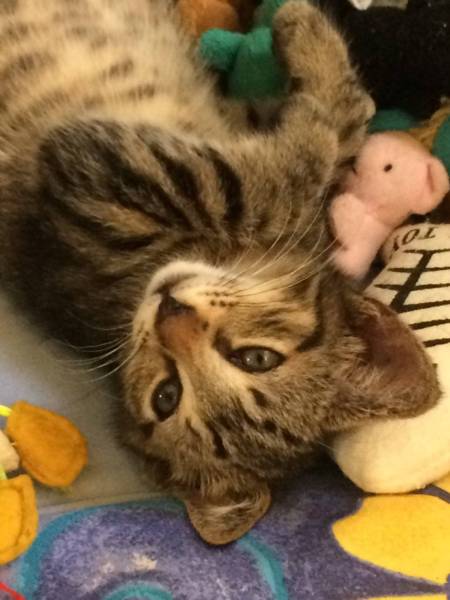This is a kitten that is bomb proof he went to an adoption day recently and was happy to be cuddled by strangers. Would suit any household especially school age children who would love to play with him.