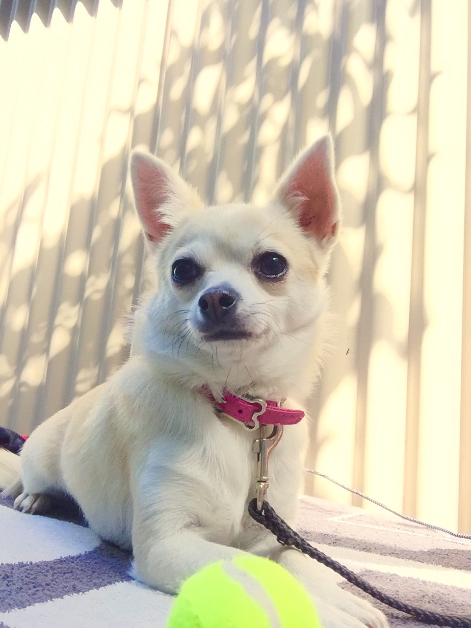 Cassie can be a bit chatty - as many chihuahuas can be. A previous owner has debarked her however the procedure did not soften her bark, rather it distorted it. We are working with her to teach her "quiet" and she's making great progress.