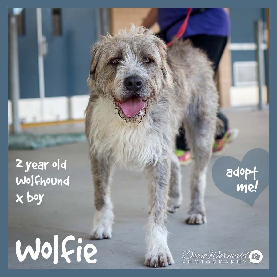 Wolfie's adoption fee is $350 and he is desexed, vaccinated, treated for fleas and worms, microchipped, and lifetime registered.