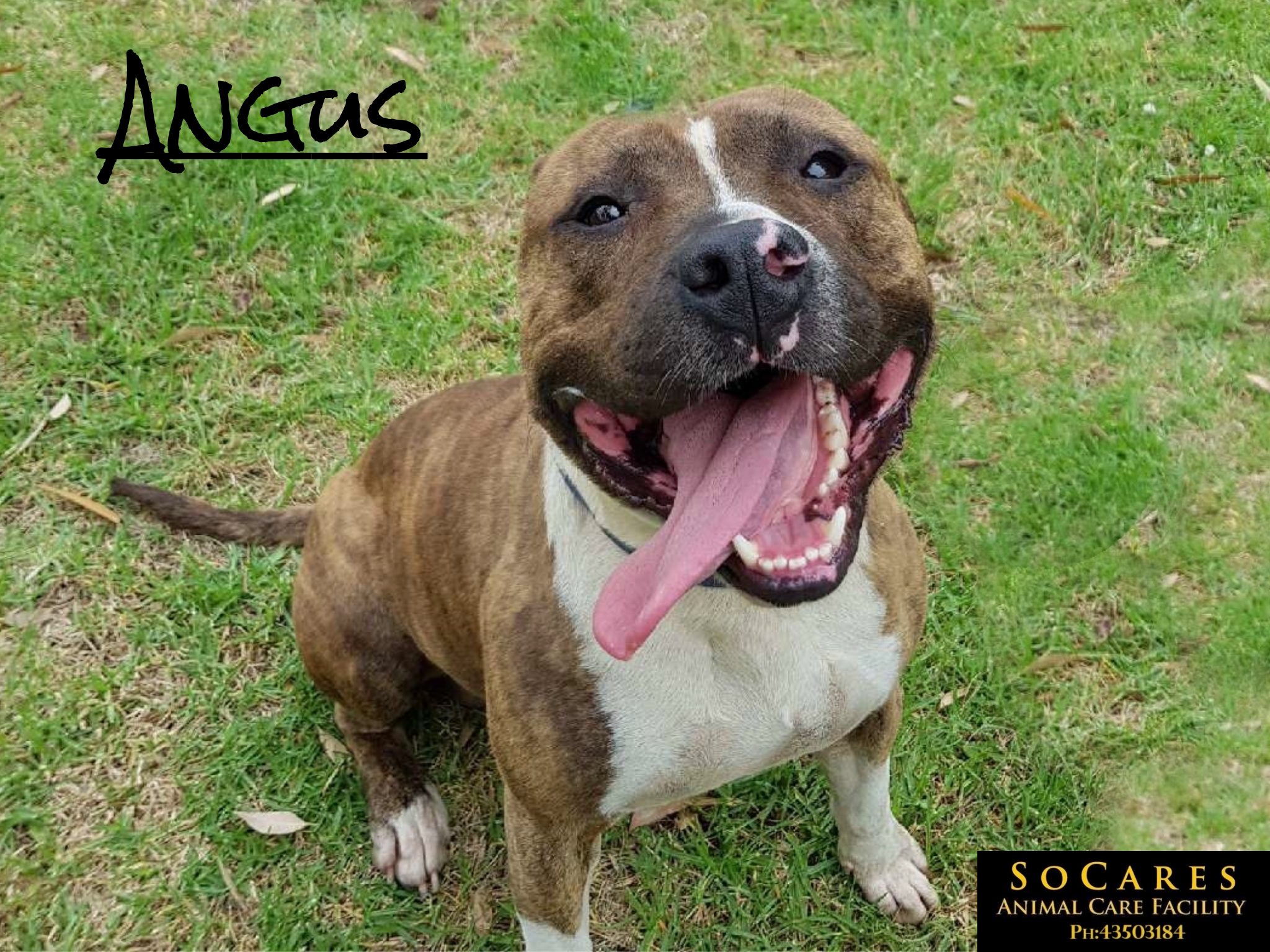 Angus is an all-round awesome boy. He has a wonderful calm nature and he would be a perfect addition for any family. Although Angus is great with other dogs, he is still learning how to play with them. Angus has shown an interest in cats in a non-aggressive way, he is just curious about them. Angus would benefit from some ongoing basic command training and a home where he will be included as a family member.