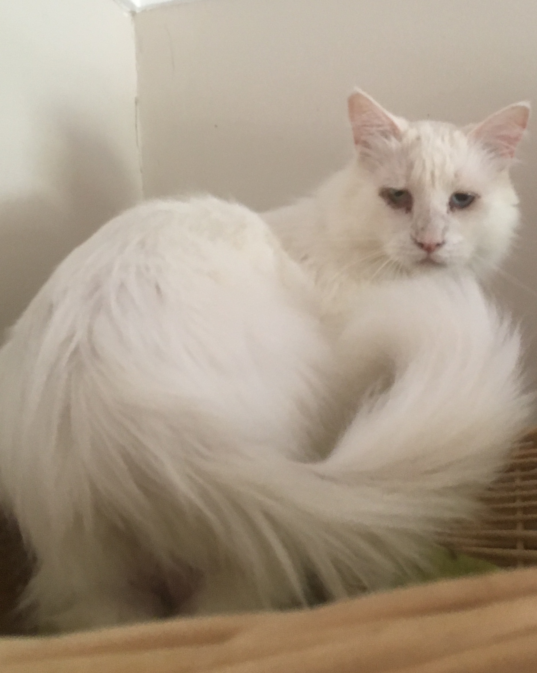 Tuppy is a 9 year old female cat. She is shy at first but once she gets use to her environment she will shine. She has sensitive eyes that will require daily cleaning. Once comfortable she loves being patted or brushed. She loves to talk and slink about your feet. She would love to be the only cat who is the world to someone/family. Her quirky personality will definitely entertain.