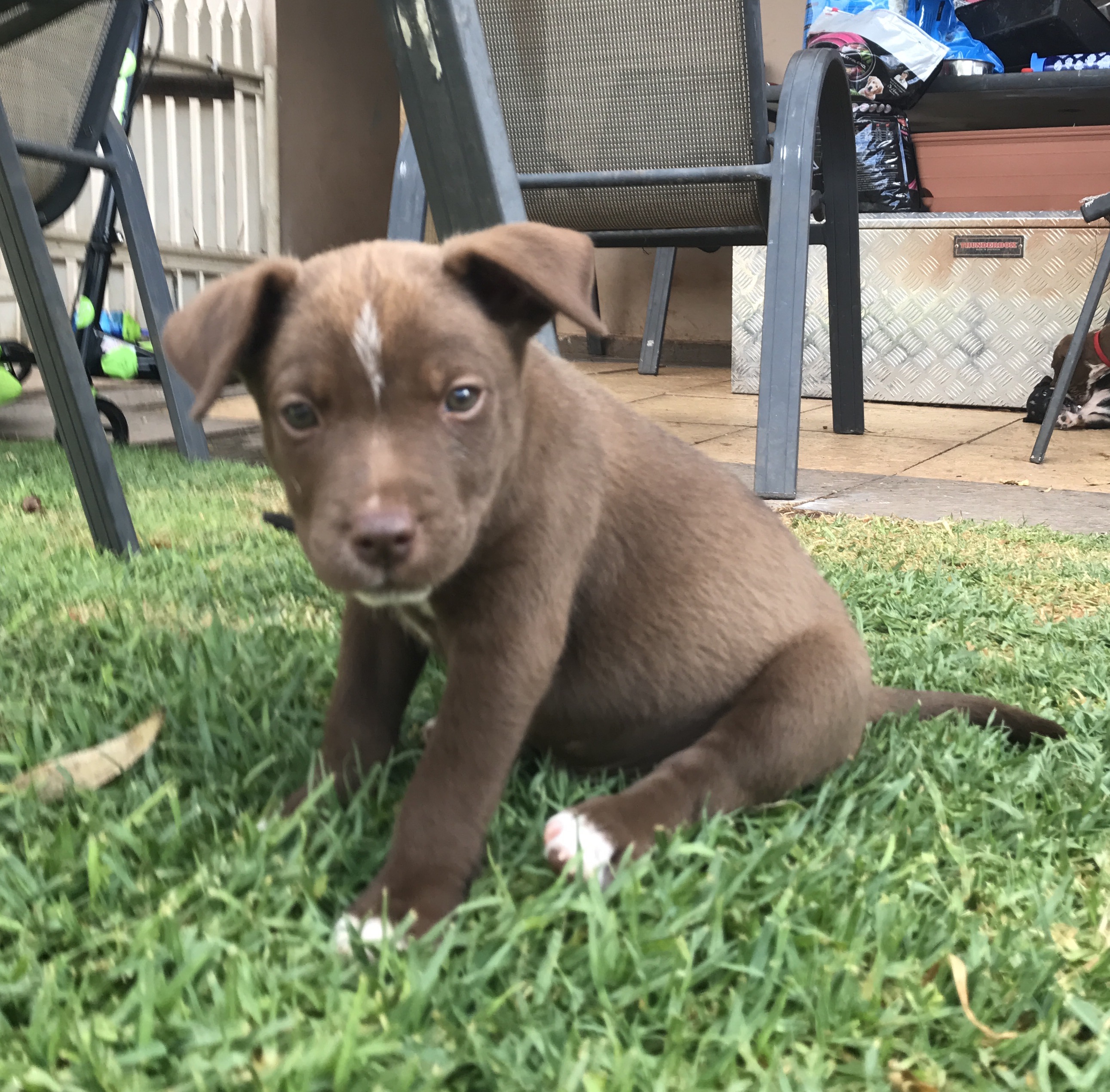 Hawk is the most adorable chocolate tubby snuggley puppy! He's shy but curious and so sweet he's got with other pets and will adapt to almost family homes