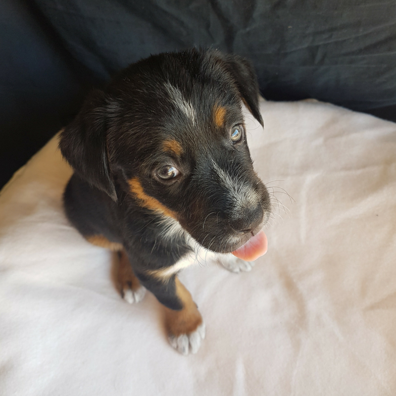 Hey there Delilah, what’s it like to be so pretty! And isn’t she just, with her gorgeous grey eyes, soft shiny coat and cute white striped face. This 6 week old bub is going to be an absolute beauty. Delilah also has personality plus. She can be a terror when it comes to play time and is currently exploring the world with her mouth. This is very common for pups, but she does seem to like giving everything a good once over to make sure her humans are safe from the killer toys!