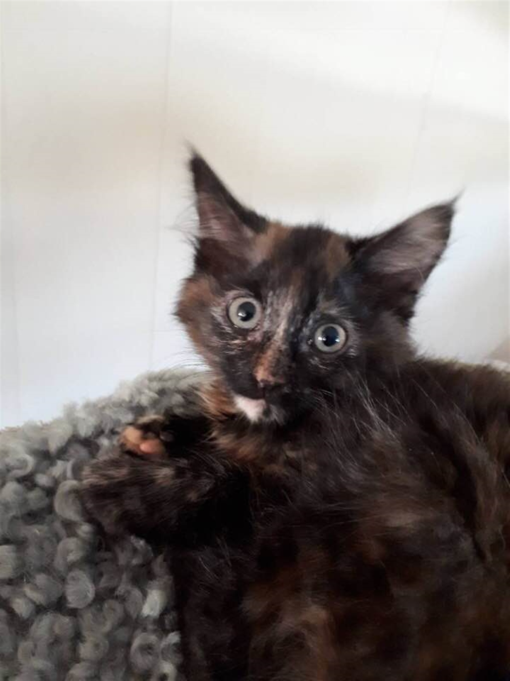 Such a pretty little girl Dinah is a very sweet kitten, she has taken her time learning to trust but now that she knows she is safe he has come ahead in leaps and bounds and is ready to bring a lot of love, laughter and affection in her forever home.
