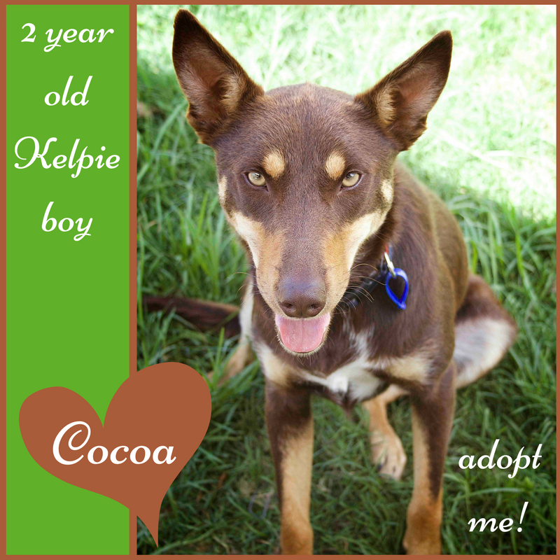 Cocoa is a 2 year old chocolate brown kelpie with bundles of love to give.