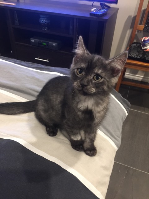 He is a typical cheeky kitten who loves his games and adventures.