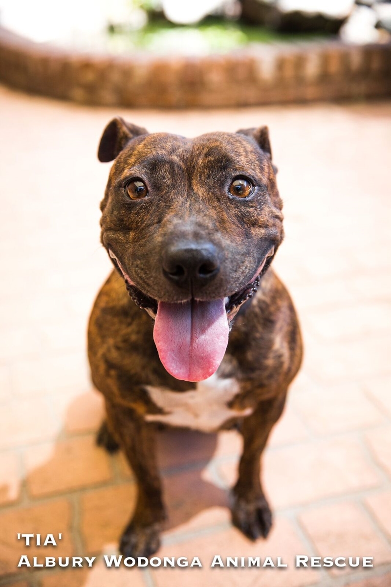Meet Tia a six year old female English Staffy. Beautiful Tia is fabulous with kids and other dogs.