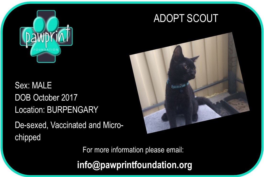 Scout is fully toilet trained and is an inside cat. Would suit a family; couple or someone looking for a mate to come home too.