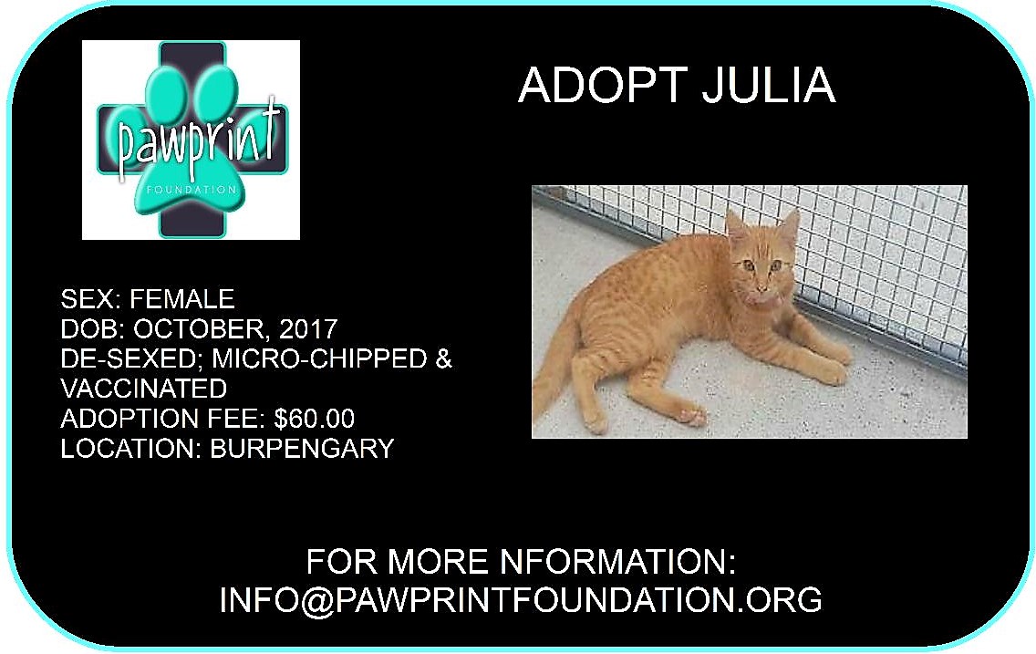 We do not take any offers as there is an application process so if you are interested in Julia, please email: info@pawprintfoundation.org and someone will be in contact with you and send through an application form.