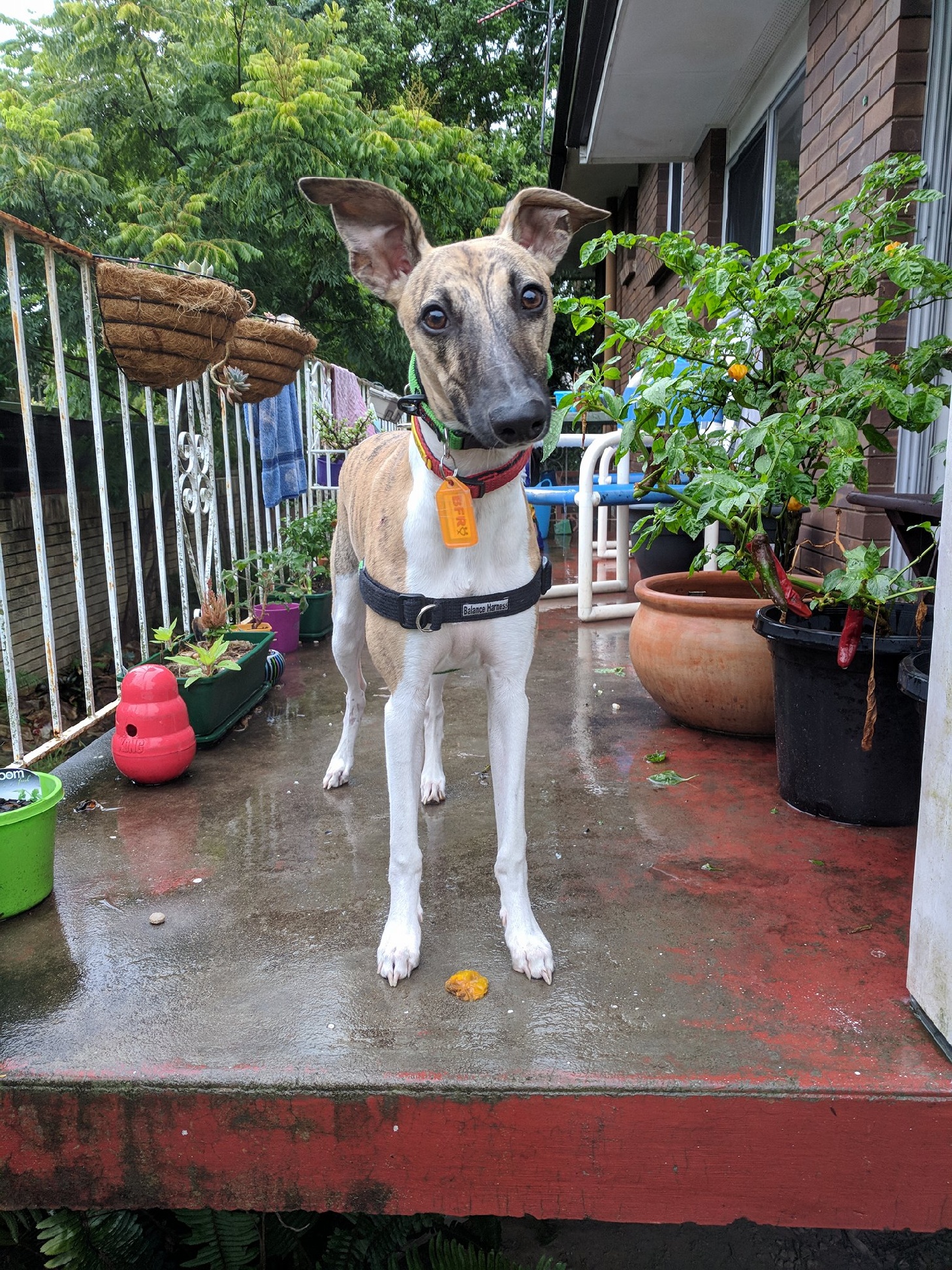 Buggy is an energetic boy, he isn’t your normal whippet, he’s not shy, he’s not timid, he’s full of beans and good times. He’d love to live another dog as a playmate. He’s great with all people adults and kids. He is 8 months old