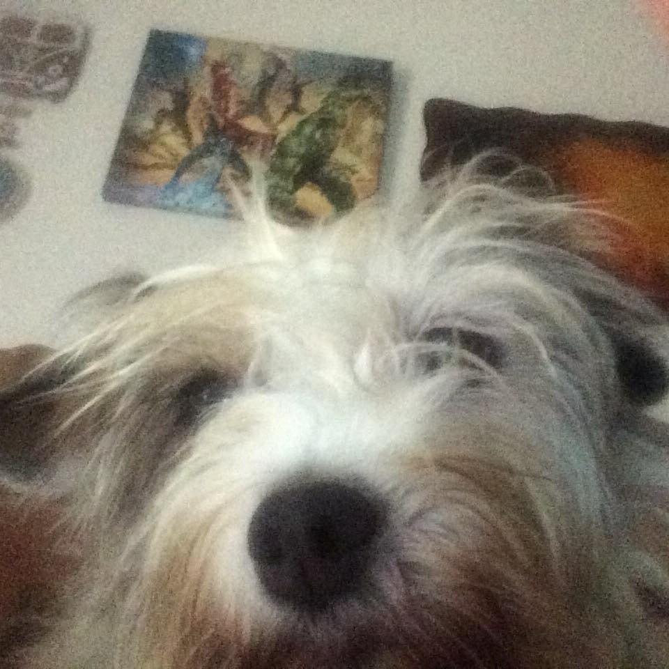 Koda is a 7 year old fuzzy terrier. She is active and loves walks and good with kids and cats. Koda is such a happy lovely girl and she makes everyone around her smile.