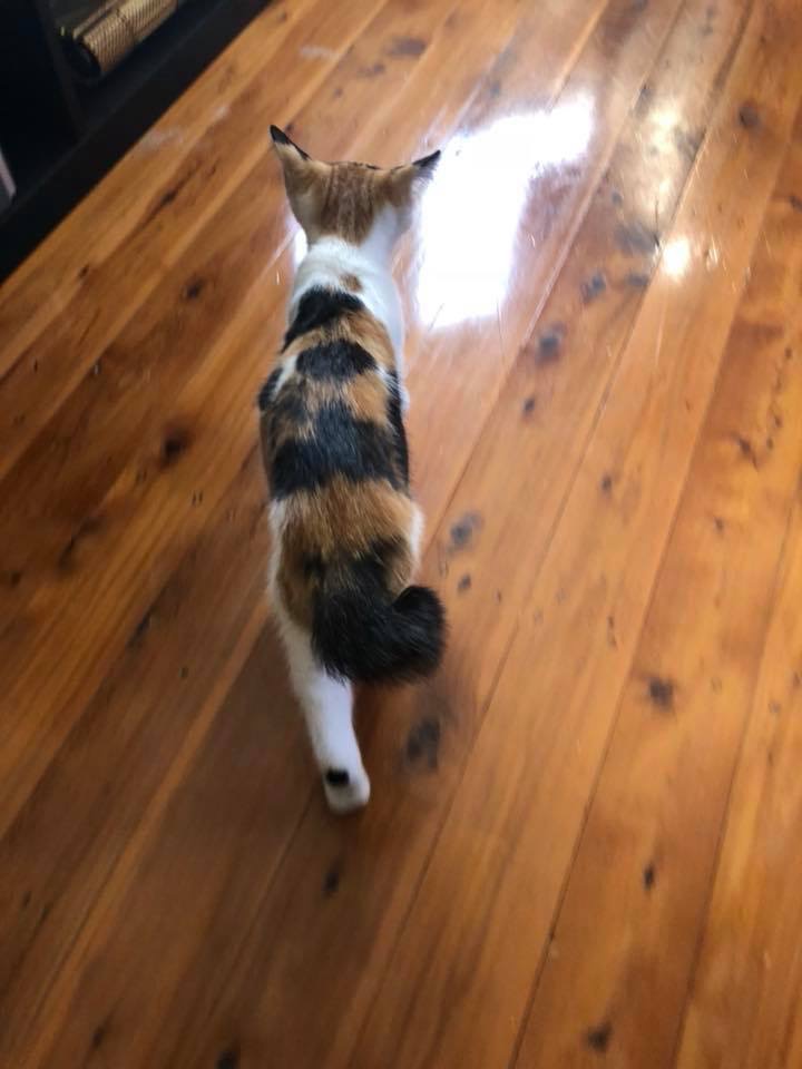 Funny quirk: Cora has a kinked tail which isn't very long.