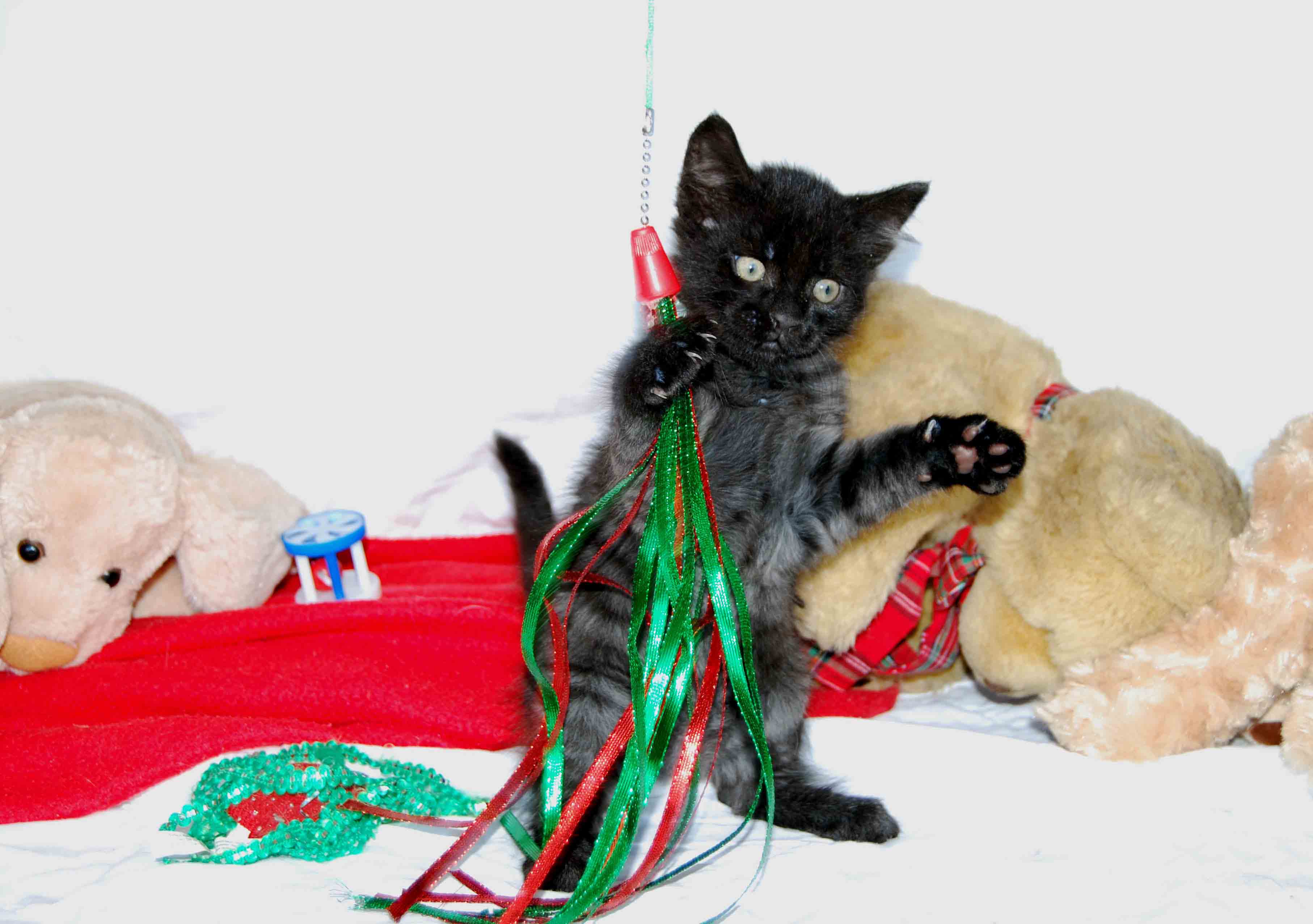 Ed is very attached to his foster-dad; and all 3 are busy bees like you'd expect from kitties our ages. We we raised with a Staffy, and three smaller mixed breeds. We have never been out side and are frightened at being out there in our crate. We'd much rather be your sweet natured indoor kitties.