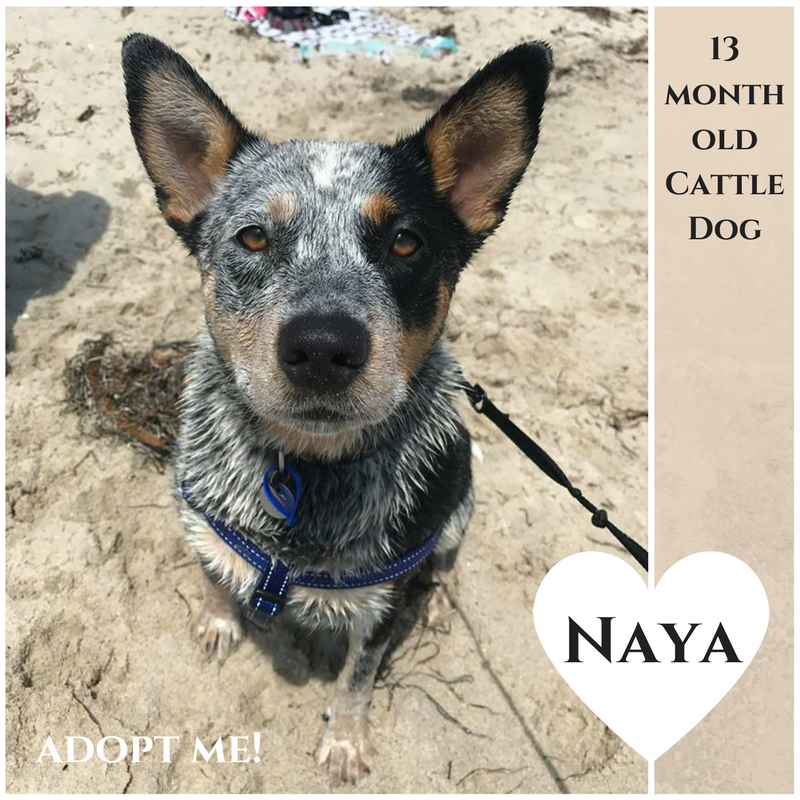 Hi, my name is Naya, and I am a gorgeous 13 month old red/blue female Cattle Dog. I am a very fun loving, curious and happy girl. One of my favourite activities is playing with the ball and going to the park. I also love the water, whether it is the beach, the lake or the garden hose!