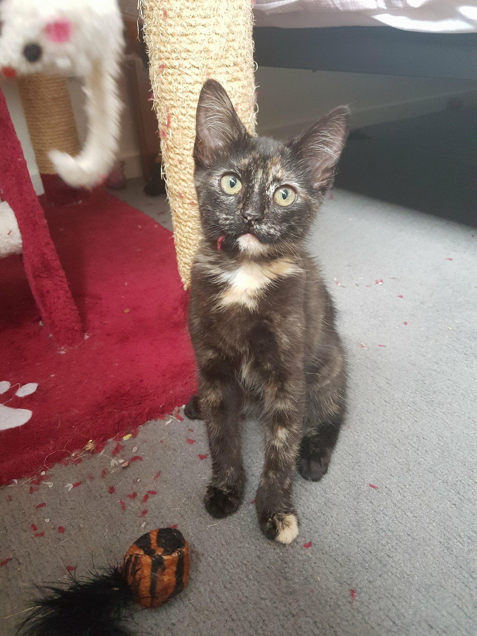 I really want to find a family that will give me lots of cuddles and help give me the confidence I need to tackle the big wide world, because I am very small. My foster mum thinks I'm pretty cute, she keeps telling me I look like the night sky because I'm covered in lots of gold stars!