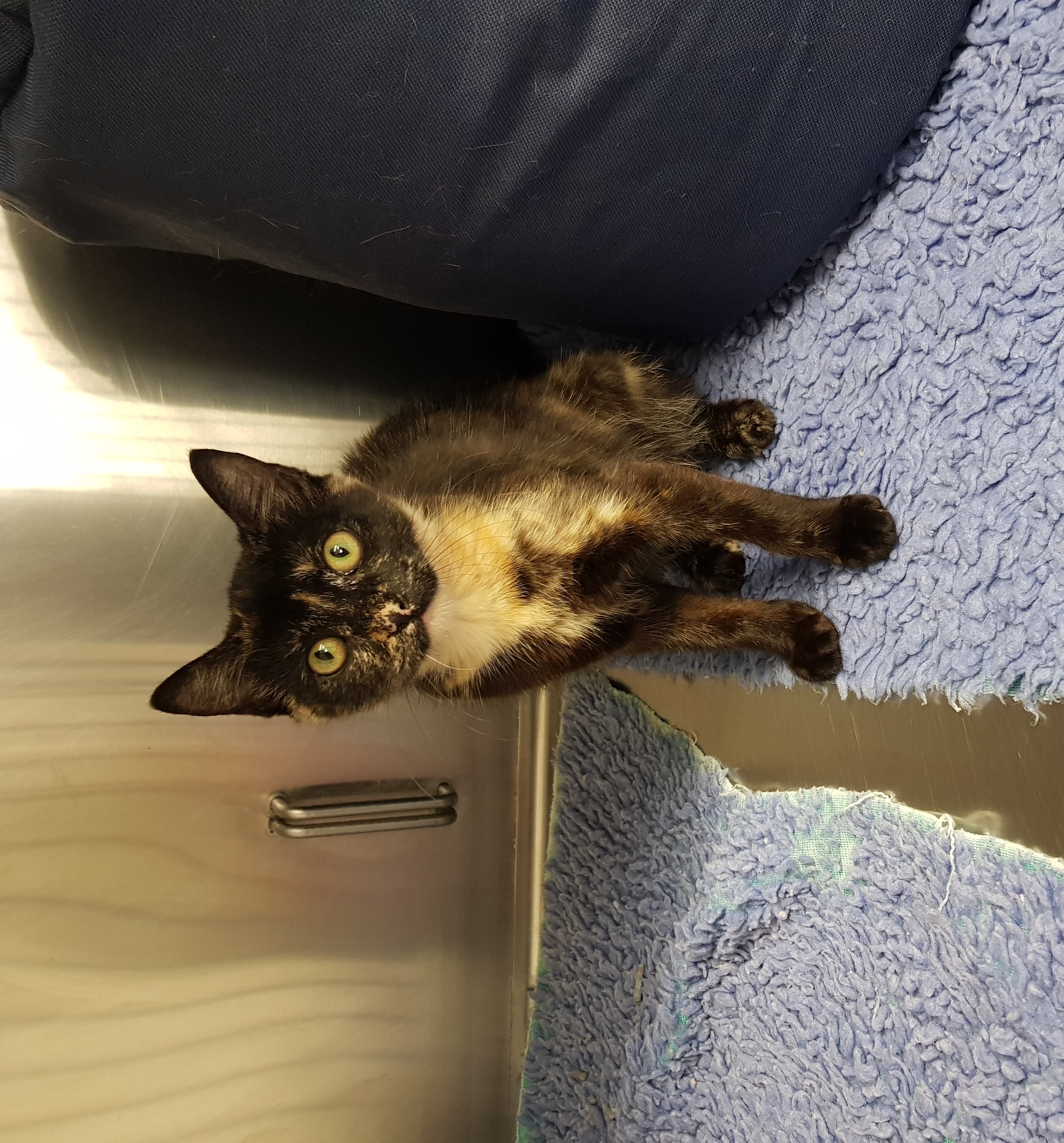 Her background is unknown, but when she came to us she was purring from the first day, and had no physical health concerns.