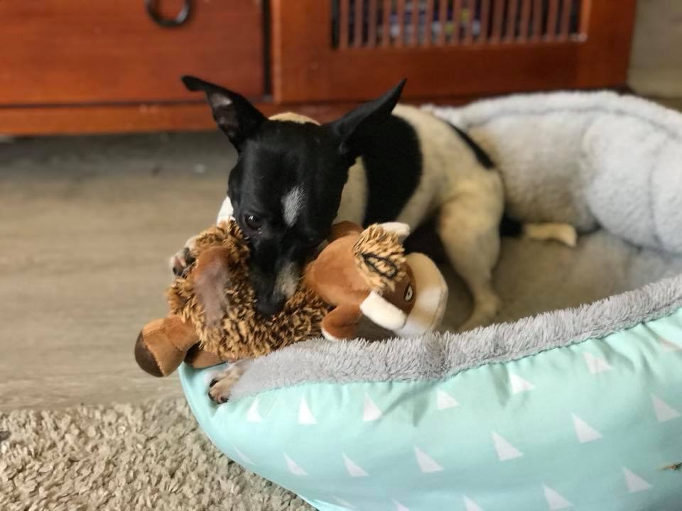 This little pocket rocket is appropriately named Rocket! Rocket is a fun energetic little guy who has spent his days in foster care perfecting his Zoomies for you. This funny little guy will keep you entertained with his quirky personality. He loves to wake the cat to make him play, wrestles his squeaky toys and pretends to be a mountain goat by jumping on the window ledge so he can keep an eye on you while he’s outside. Rocket quickly made friends with all his furry foster friends and adores children of all ages. Seems like our fearless adventurer has his own kryptonite however………..the mighty Vacuum! Rocket remains unsure of the Vacuum and will jump to the nearest lap for safety. When play time is done Rocket loves to snuggle and once bed time comes around he will race you there.