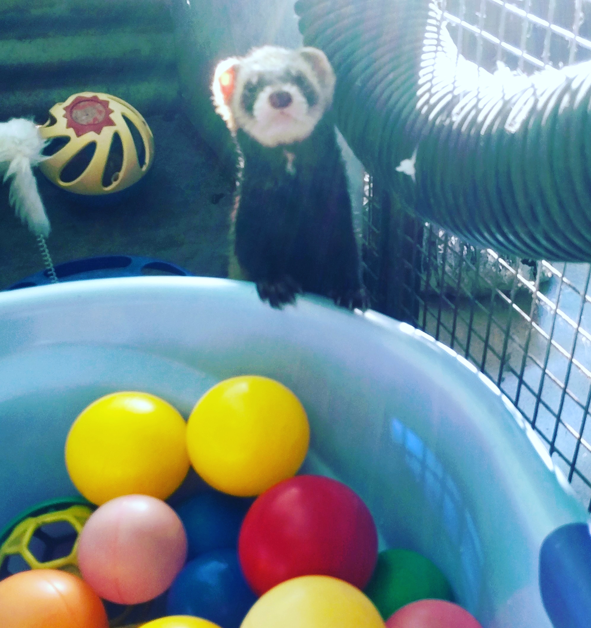 Two huge chunky bonded boys. They get along fine with other ferrets and love playing. I've been told Snow bites but he hasn't since being here.