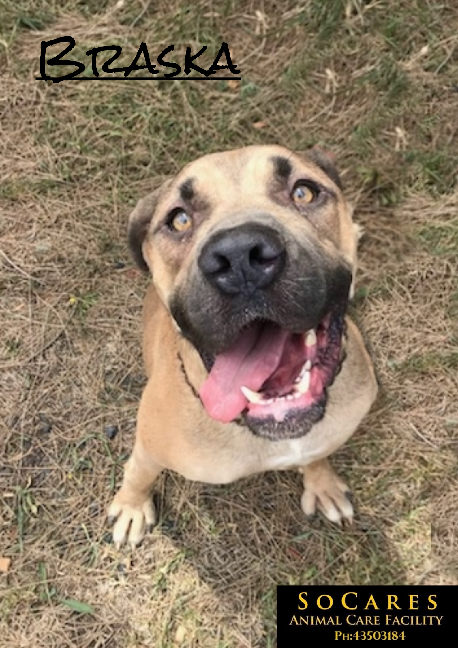 Braska is a delightful all round, beautiful boy. He loves being with people and he is very relaxed around other doggie friends. He listens to is handler and he is confident when meeting new people. He loves treats and going on his daily walk, however Braska would benefit from some further basic training. Braska has been tested with cats and he was non-reactive being in their presence.