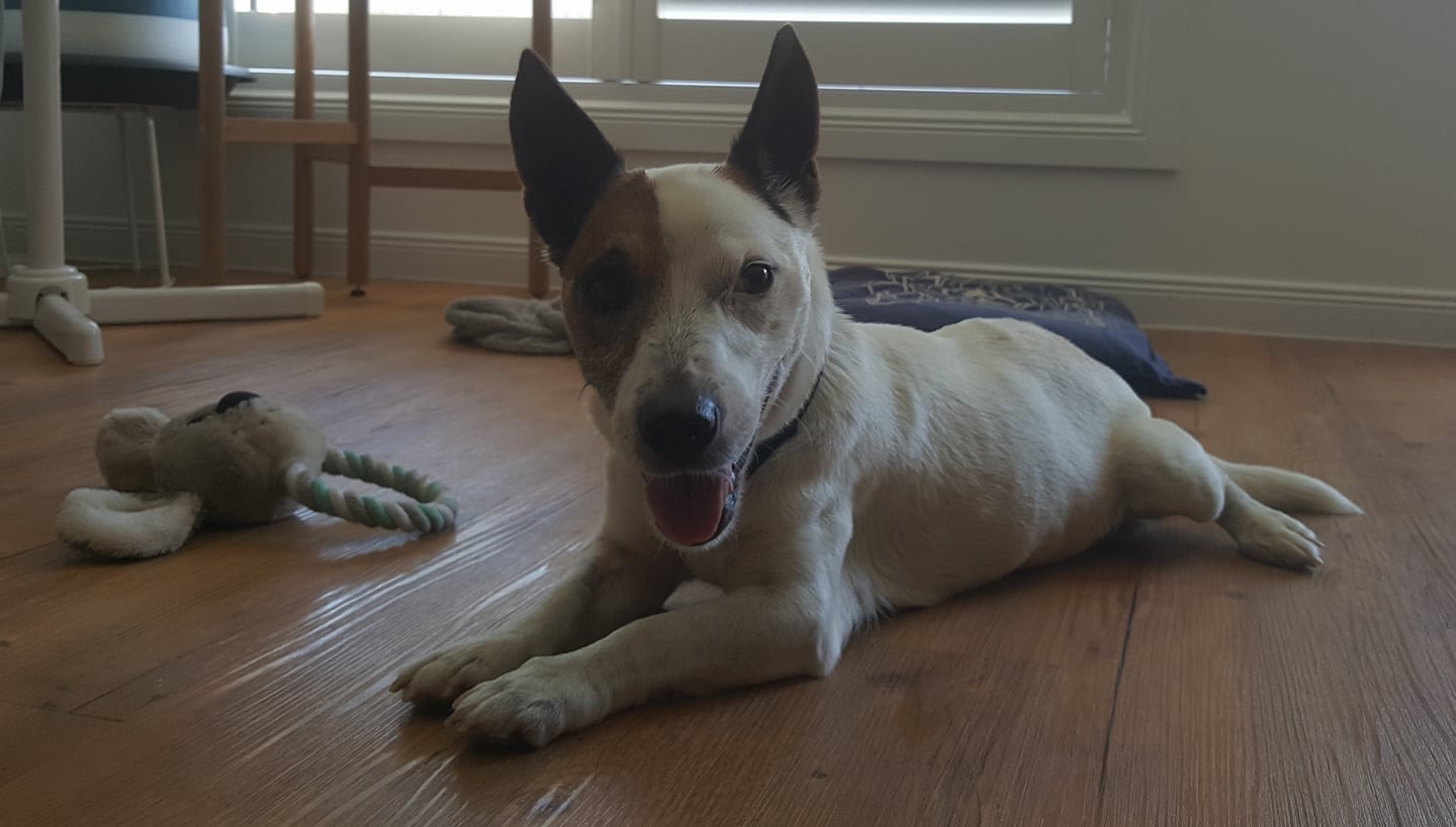 He came in as a stray so we aren’t sure if his exact breed and age. When he first came in he was in very poor condition, the vets thought he was about 12, but after lots good quality food and sleep, he started to feel happy again and look much younger, we now think 8 or 9. His future is much brighter. Jerry is house trained but would need access to grass for toileting.