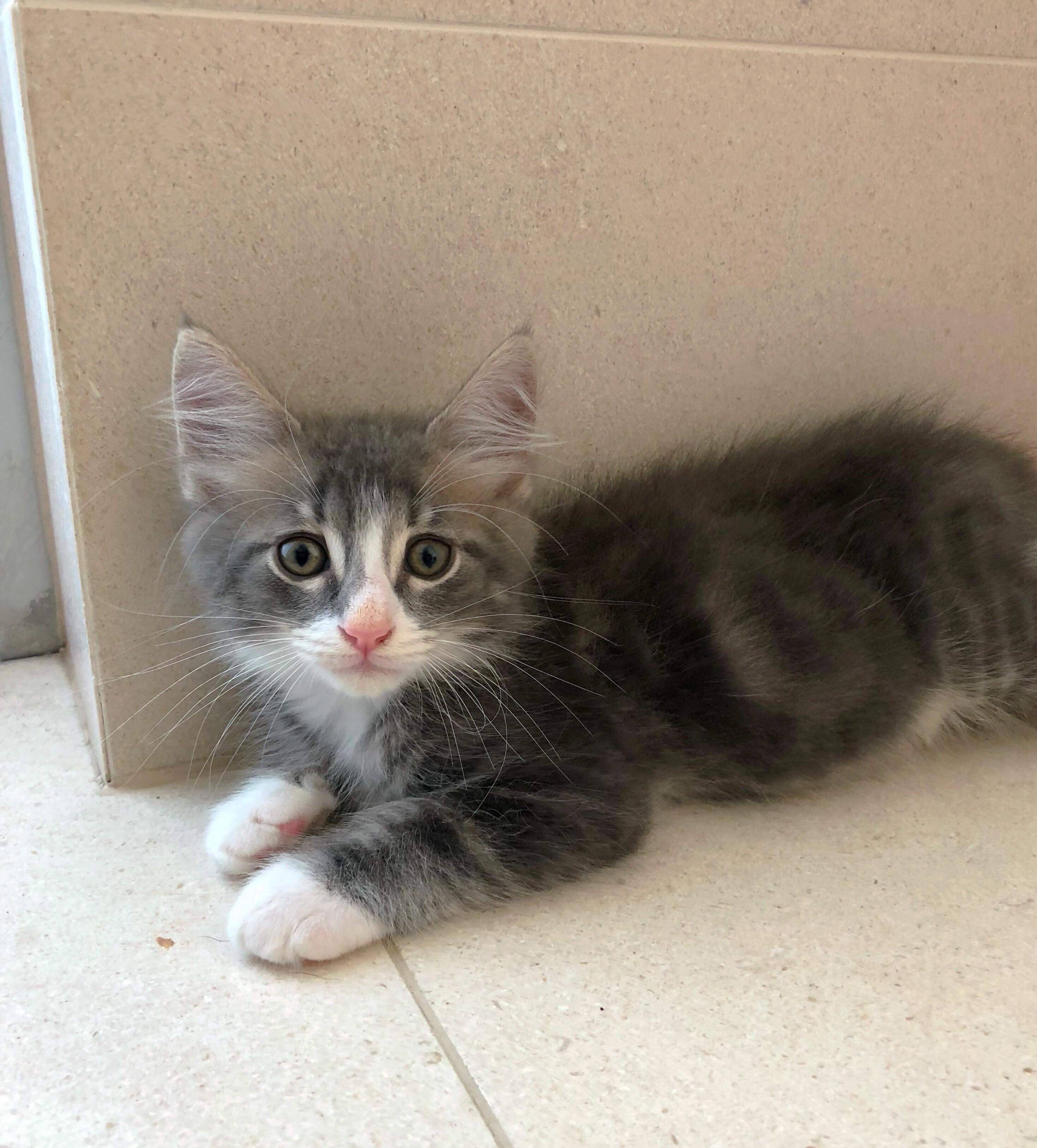 He has been cuddled and handled by school aged children. He has also been fostered with a dog and is not too bothered by her, as long as she doesn’t frighten him. He is also litter trained.