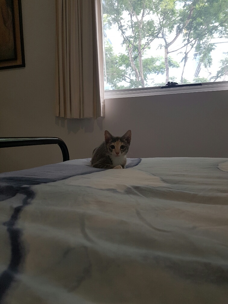 You can't get more affectionate that Momo. She is the first kitten we have fostered that likes her tummy stroked. She trusts you completely as long as you pet her for as long as possible. Momo is the kitten that will snuggle on your bed and will own your home. She's confident and always in need of your attention. She particularly loves our adult cat who she snuggles next to and follows around. Momo also love a good game and plenty of toys. Momo needs a family who give her plenty of attention but also are gentle and don't abuse that open vulnerable trust she has. She would be absolutely ideal for a couple who will treat her like the needy, loving baby she is.