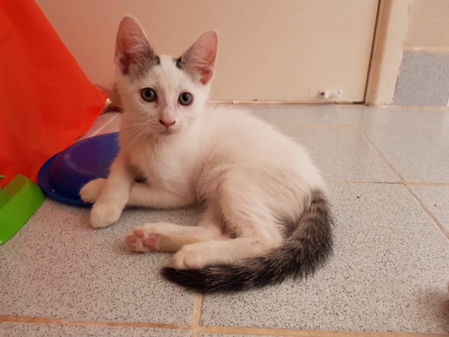 Hi! My name is Olivia. My foster mummy said I needed to tell you about myself. I am a little timid of people whilst I live in a crazy household. I am used to being picked up and am not afraid to be cuddled, I just don't enjoy it as much as the others. I am a lot more quiet.... UNTIL YOU BRING OUT MY TOYS! I do not shy away in the slightest when it comes to getting those moving things! I have even seen a red dot but haven't managed to catch it yet! My foster mummy also said my nose gets dirty a lot and she wipes it for me much to my disapproval! I don't enjoy it but I know she is just trying to look after me. I would like a home with older or more gentle children. I am used to being held, patted and having children around the house but I would much prefer to be on my own with people I can spend all my time with! In saying that, please don't leave me for long periods alone on end. I still need someone to love me! Even if it's one of my siblings Arthur, Maria, or Little John! Maria and I secretly like to pick on the boys... But little John and I have the closest relationship! I hope I can find my forever home... Olivia