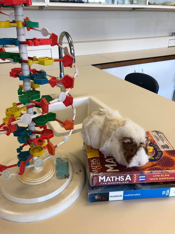 Meet the well educated, honorary teaching assistant, Jess. Jess is currently available for adoption and when not helping educate students at Bracken Ridge State High in their numeracy program and about animal rescues and care, she loves to eat..... and eat! She is a fuzzy, chubby girl with a gentle and calm nature. She likes a good cuddle and did I mention food? Come and meet Jess at our next open day.