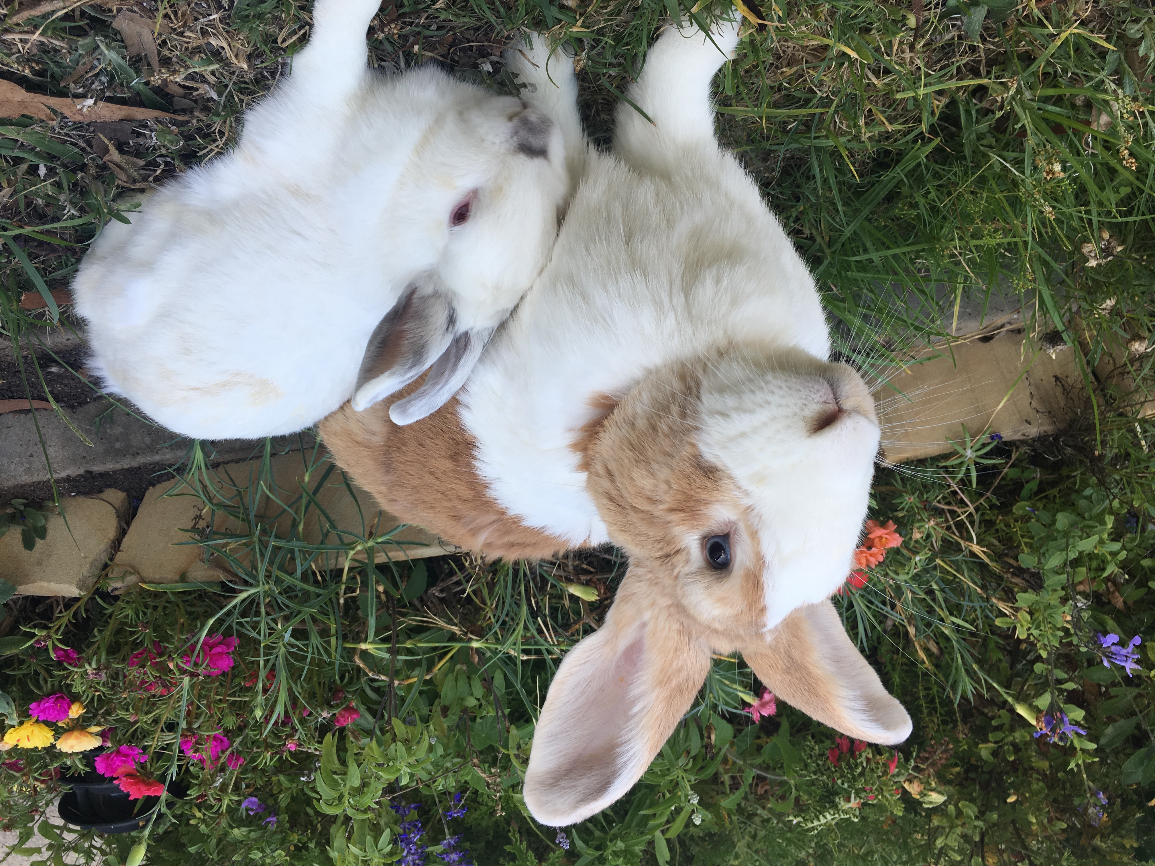 These two are both very cheeky buns that will keep you entertained with their antics as they love to explore. They're friendly and do enjoy human attention. Both are very keen on their food and you will win them over quickly if you have food with you.
