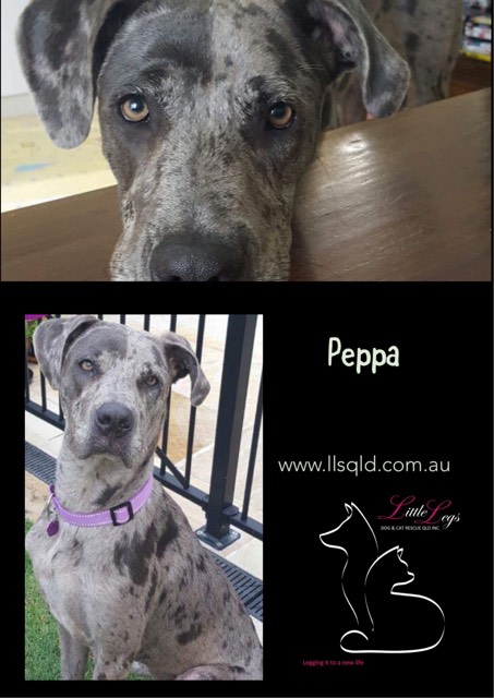 My name is Peppa, a Great Dane X and I am 2 years young, with lots of pep just like my name.