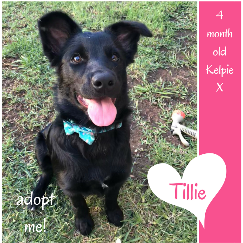 Meet Tillie! Tillie is a 4 month old female Kelpie cross pup. She is currently living with a 10 month old Pug puppy and adores her! Tillie would be best suited in a home with another dog her size or smaller as she would love the company. Tillie requires daily exercise. She currently goes for lots of walks and spends lots of time at the beach.