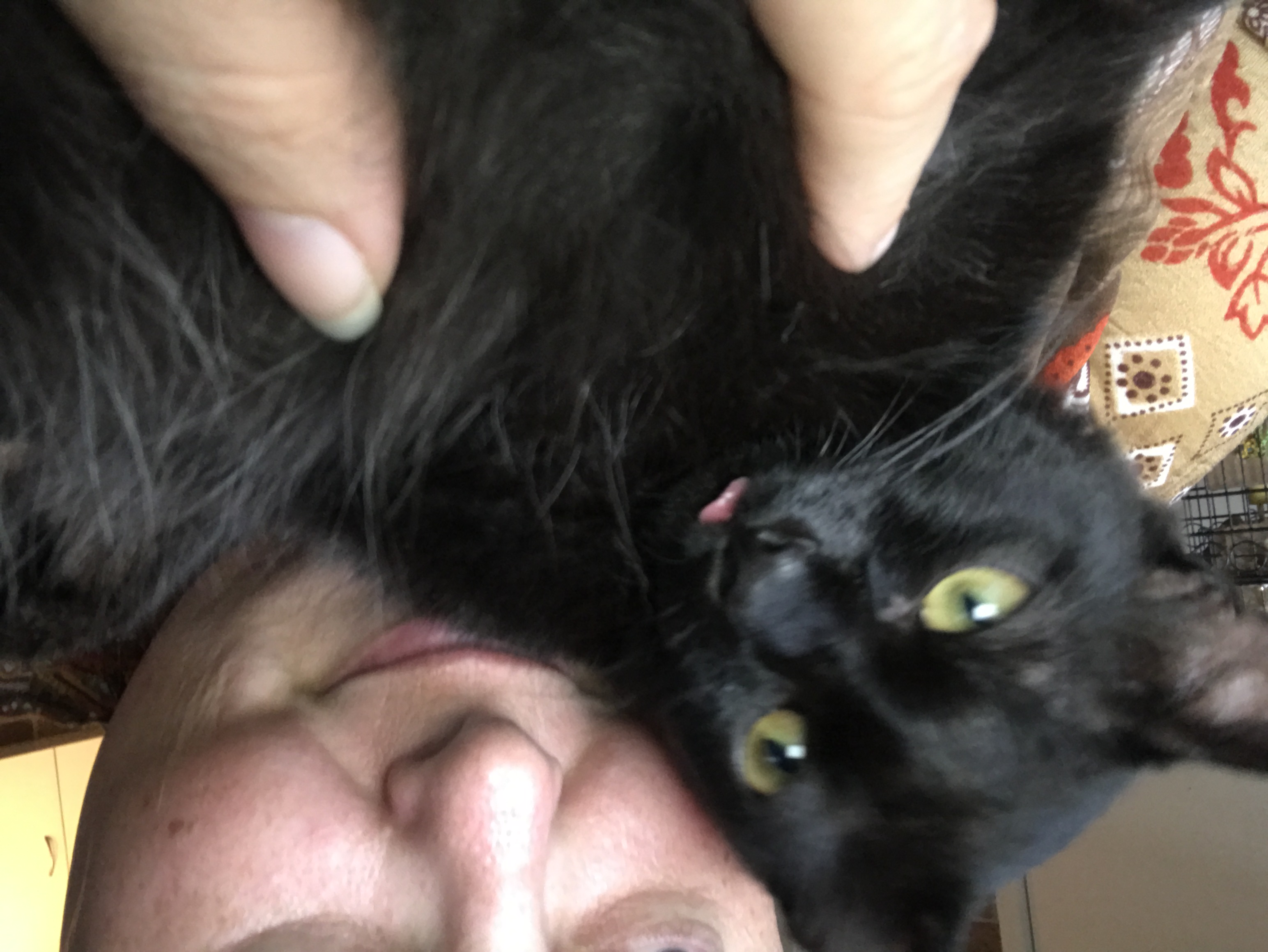 I think it adds to my charm as it makes me look like a black pom-pom, with legs. I have a big schnoz and I LOVE to kiss and lick the face of my person. I seriously love my person. So if you adopt me and let me into your heart, there will be kissing. I also like noses. Just so we're clear.