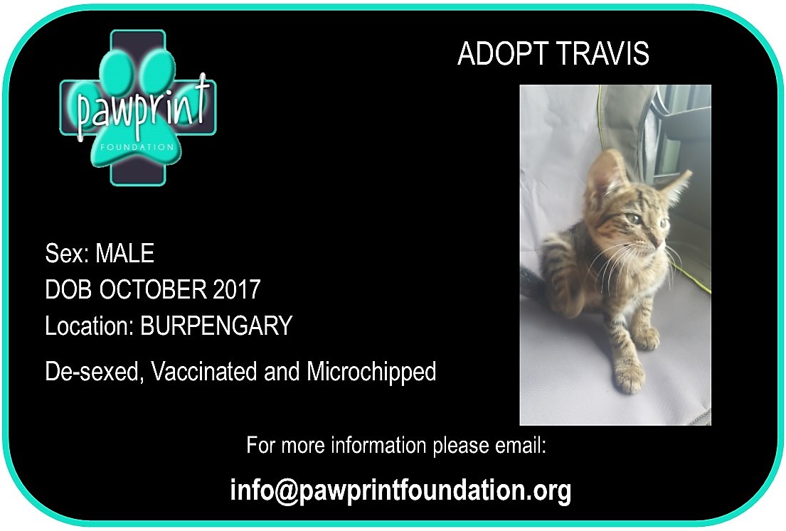 Travis has had all his vet work done & is vaccinated, mirco-chipped and de-sexed. He is playful, energetic and has a Cheeky side!