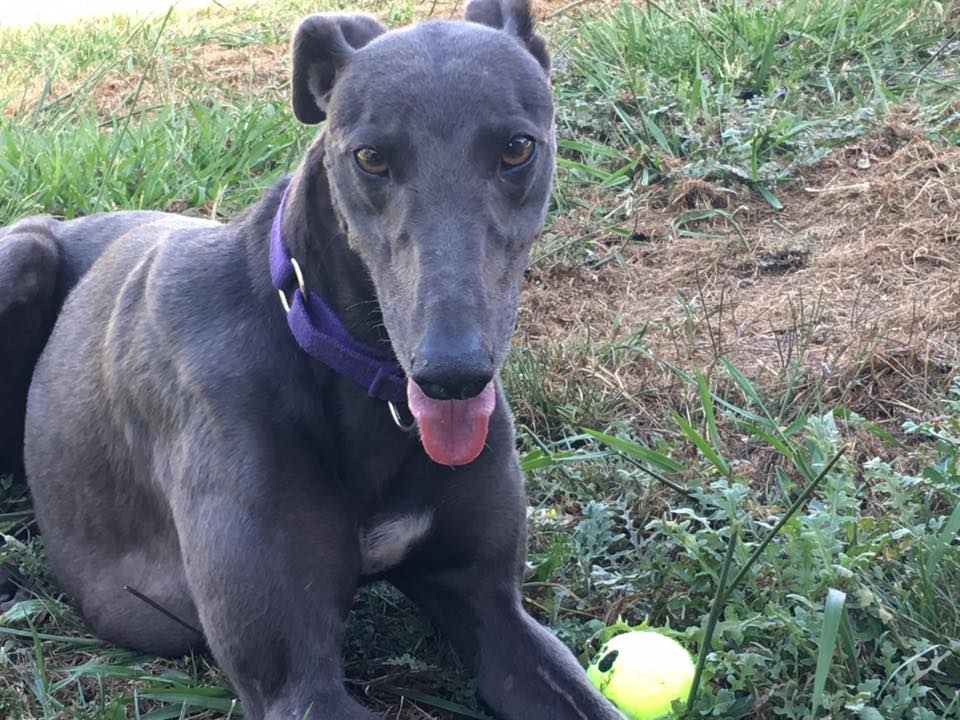 Cozy is a small blue male greyhound, with a small white patch between his front legs and bright golden eyes, he is of lean build and a very handsome boy. Cozy is an ‘Anzac’ day boy being born on the 25th April. He will be turning 5 this year.