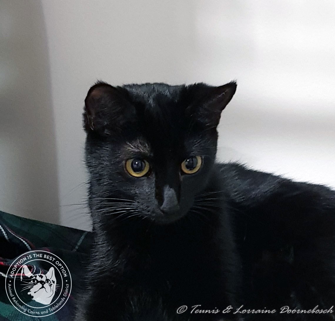 Chanti was born approximately 01.05.16. Chanti's mum was apparently a Ragdoll and as a result Chanti has the most luxurious velvet black coat that just begs to be stroked and petted. She's a gorgeous kitty with a soft nature. Chanti gets on well with most other cats and little dogs and is used to living with children. All her vet work has been done and includes desexing, microchip, vaccinations, flea and worm treatment and she has been tested FIV negative.