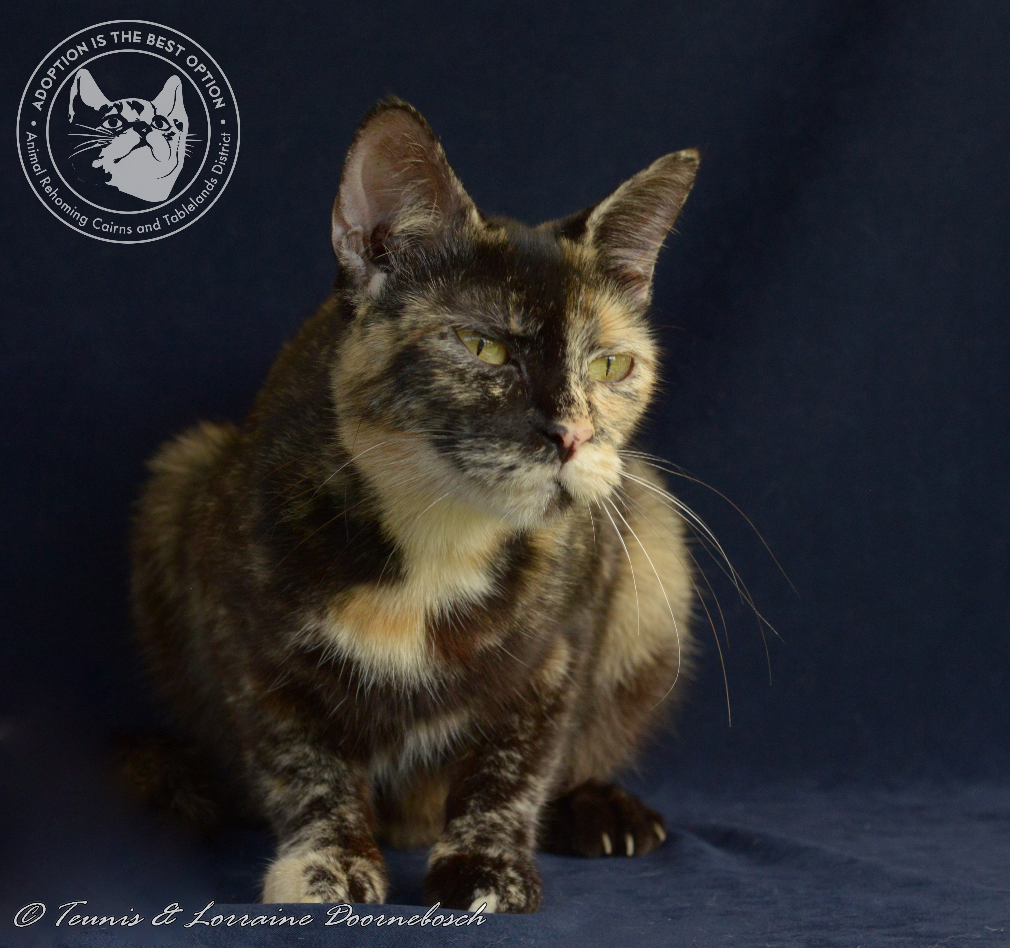 Camelot was born approximately 12.11.16. She was surrendered to the pound with seven babies in tow and offered up for rehoming. Camelot has been the very best mumma cat ever and is still caring for her last little kitten. Unlike most torties, Camelot seems so grateful for being rescued that she can't give you enough love and affection. She adores smooches and enjoys being picked up and carried about. Not a sign of that naughty torti reputation.