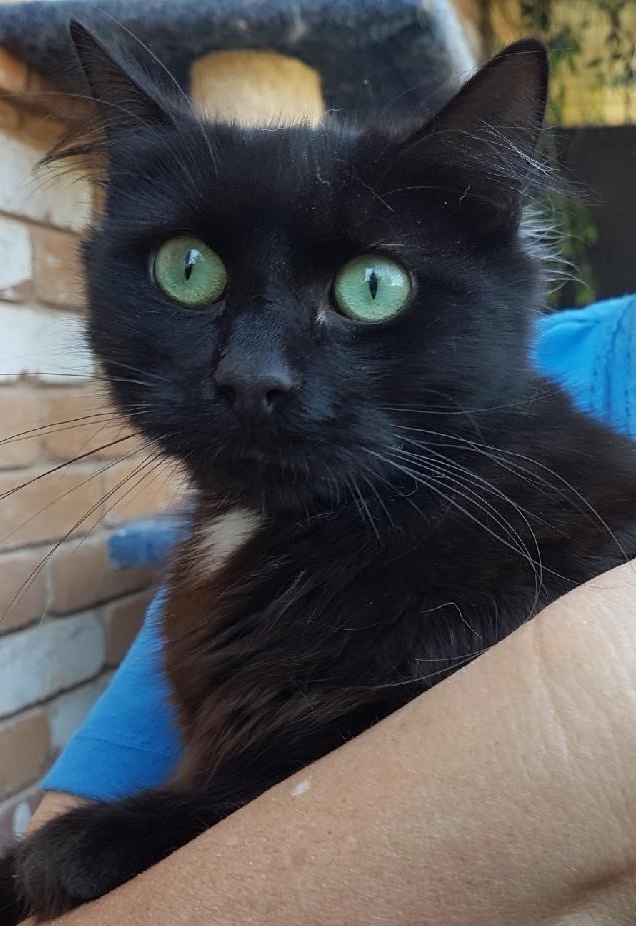 Look at this gorgeous young cat. With her silky black coat, "diamond" on her chest and lots of love to give.