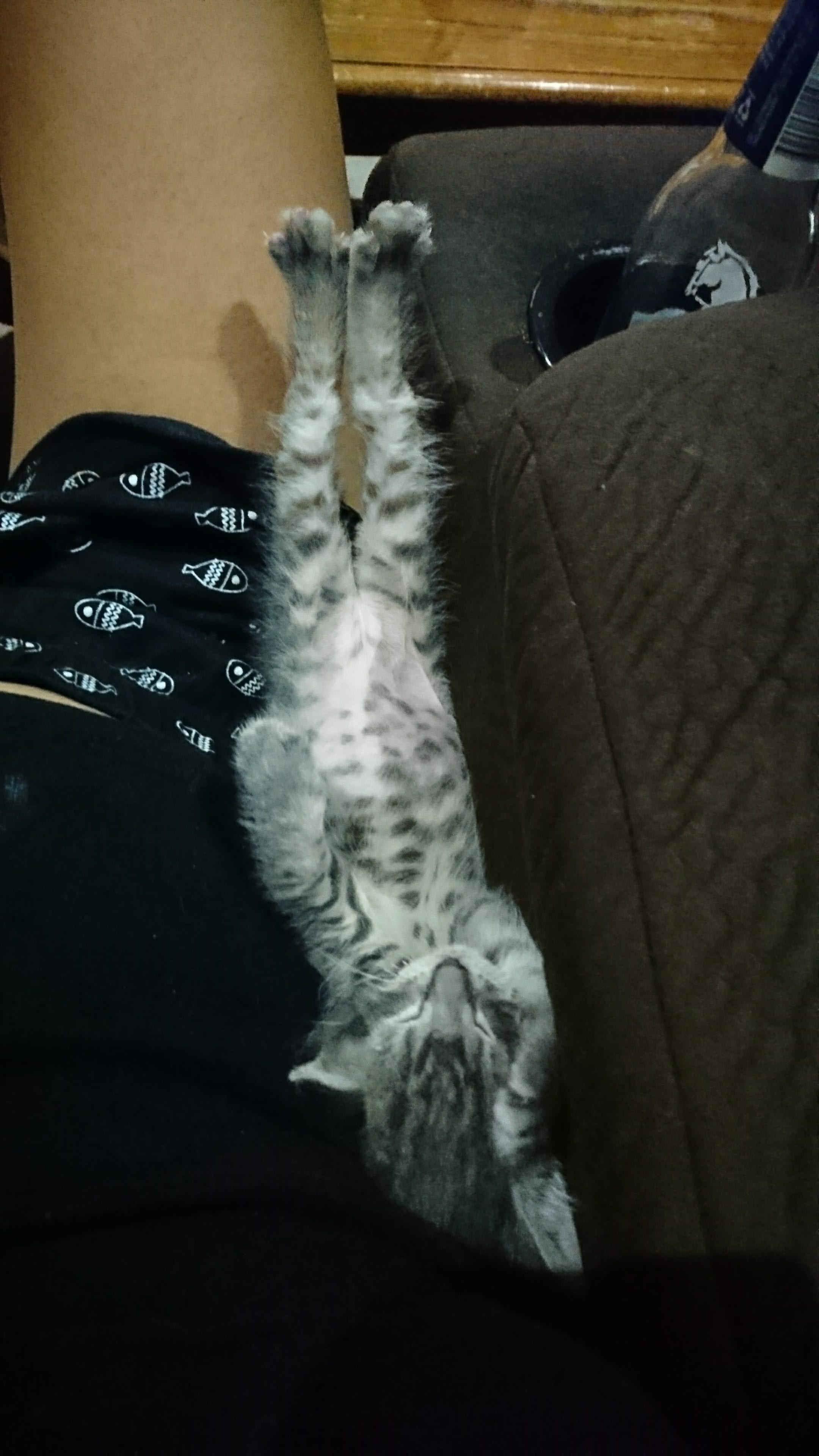 Leon loves cuddles and especially belly rubs, he lifts his back leg when I scratch his belly. He is a purring machine and is always looking for affection. He enjoys his days playing with his foster sisters and all his toys, but at nap time he likes curling up in my arms while I watch my tv shows. He is very affectionate and loves human company; not a timid kitten at all when meeting new people. He is very funny and would suit a family where he would be loved and given all the attention he needs.