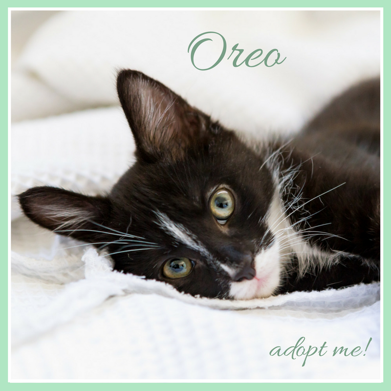 Orea is a beautiful black and white tuxedo kitty who is super sweet and comforting (just like his name sake).