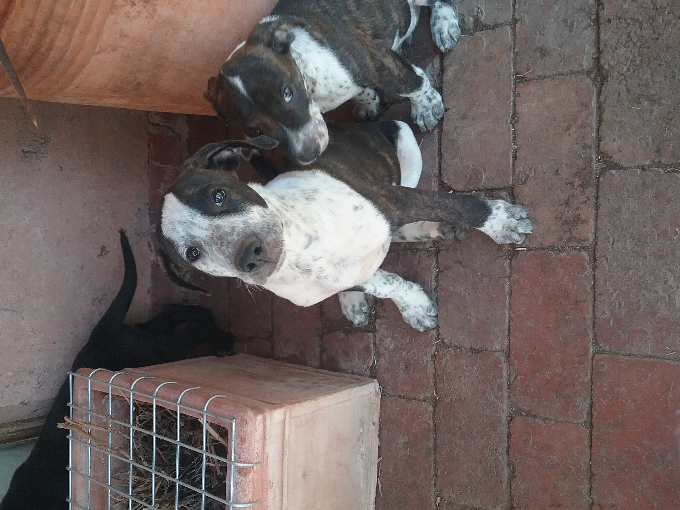 I met both mum and dad both beautiful natured dogs dad being a staffy mum a red dappled girl I will not guess a breed although likely some cattledog in the mix.