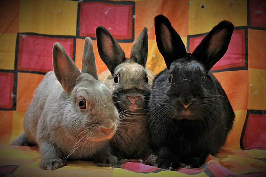 DOB: 04/01/2016 (Violet) & 01/01/2017 (Pumpkin and Sooty) Breed: Netherland Dwarf These three wandering the streets until they were safely rescued. Violet, the mum of the group, had been dumped 6 months previously and was found with her 2 babies Sooty and Pumpkin. We would love to find a home for this ready made family to settle into together!