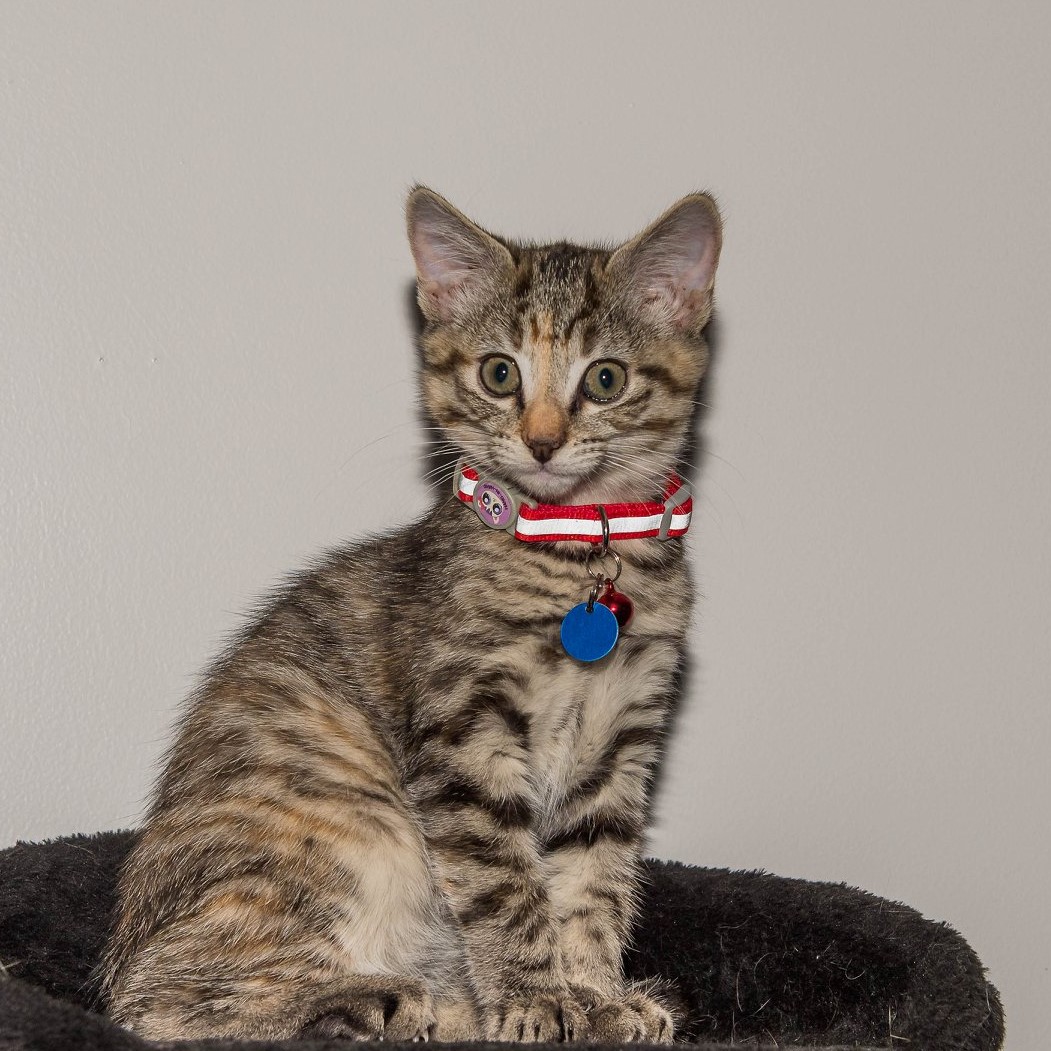 Cleo is just starting to get the hang of pats and has found that she likes them. This little one’s purrs are loud enough to rival her Mum. An expert in acrobatics, especially when facing off her Sister, this daredevil will jump from the wall to give her Foster parents heart attacks.