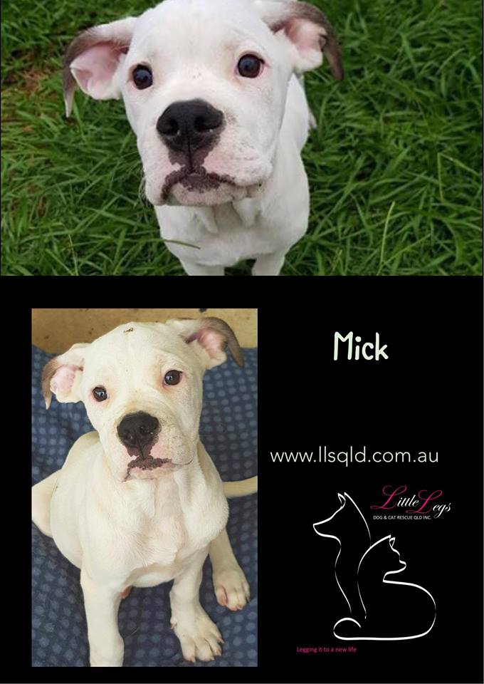 Mick is a gorgeous boy. He loves pats, cuddles and belly rubs. He likes to help with gardening and rearranging plants. He can climb onto tables.He loves toys and games of tug a war either with another dog or a human.