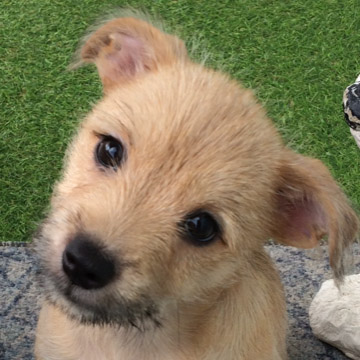 Felina is a very healthy little puppy who has been raised in a home environment. She loves playing with her brother and sister and is living with 6 other dogs so would like another small friendly dog to play with. She's met lots of people and is friendly and affectionate with them.