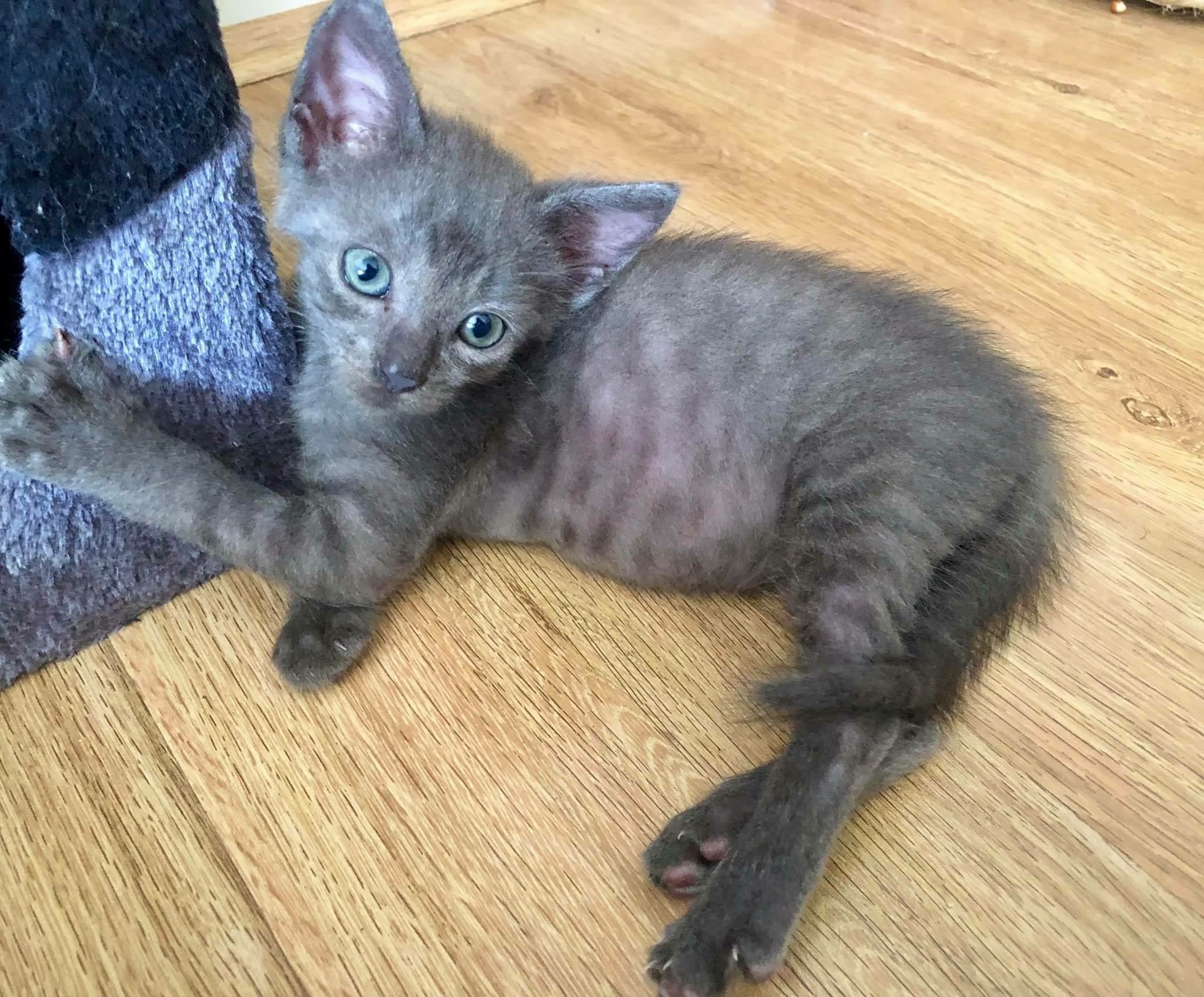 Smokie is the tiniest but also the smartest. He’s always the first to figure things out and is very bold. Seeks you out and looks right at you like an old soul. Very affectionate. Available for pre-adoption now.