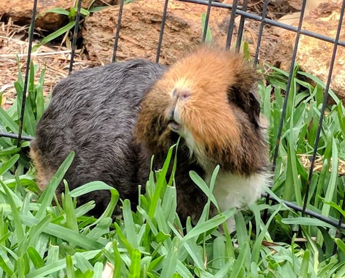 Please be aware that Rhubarb being a long hair guinea pig will require regular, thorough grooming and hair cuts to avoid the heat in summer.