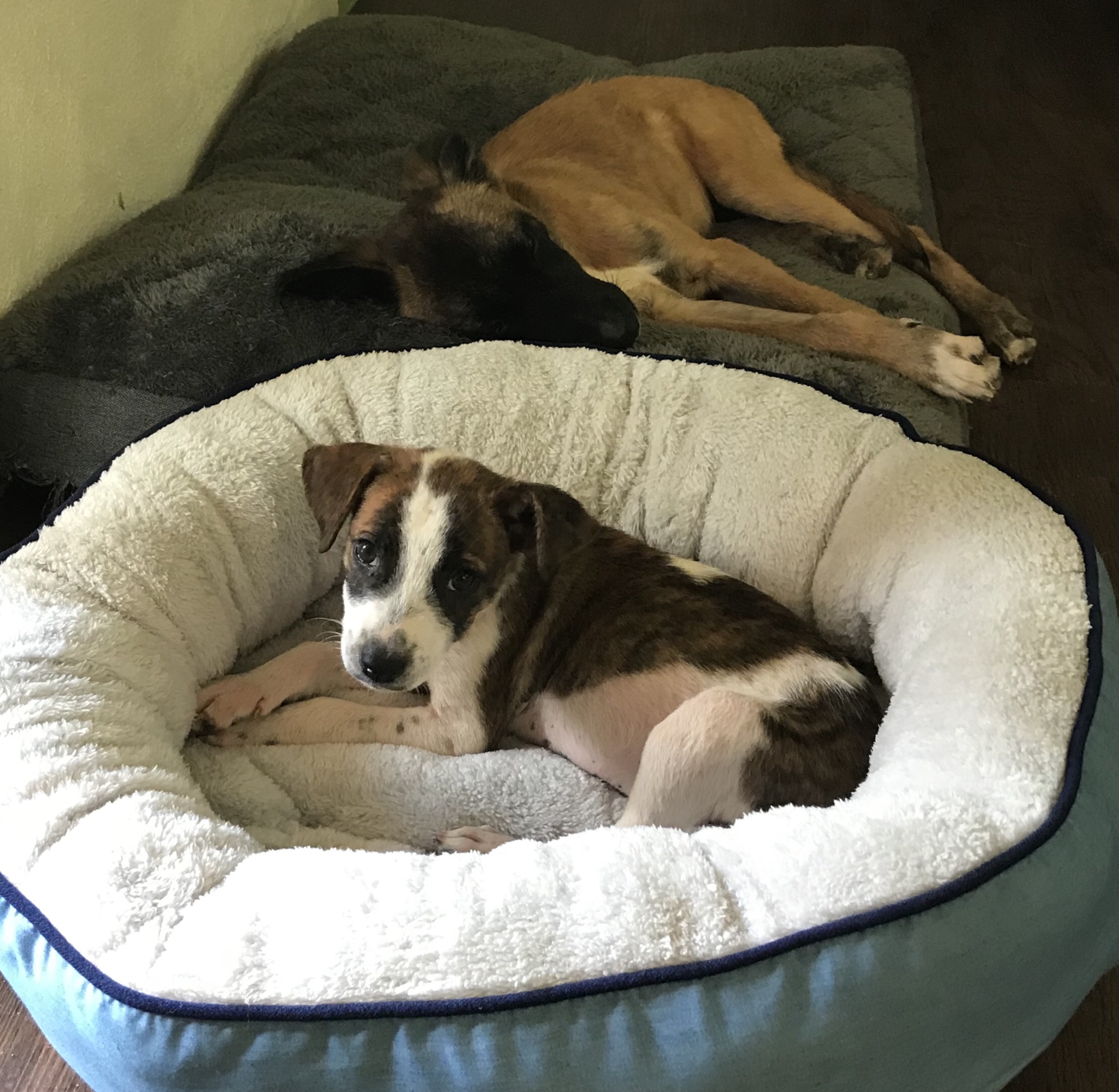Molly is a gorgeous puppy, just so composed and confident. She is very small, yet she mixes it with the big dogs in care very well and is accepted and liked by all of them. It is particularly sweet watching her try to boss Big Red around. She just doesn't recognise that he is 5 times her size! Molly is very sociable and comfortable with the dogs but also used to people of all ages and very friendly and trusting. She loves a pick up cuddle and a sleep on a lap, but she also bunks down with the other dogs for a sleep and finds her own niche in a shared bed.