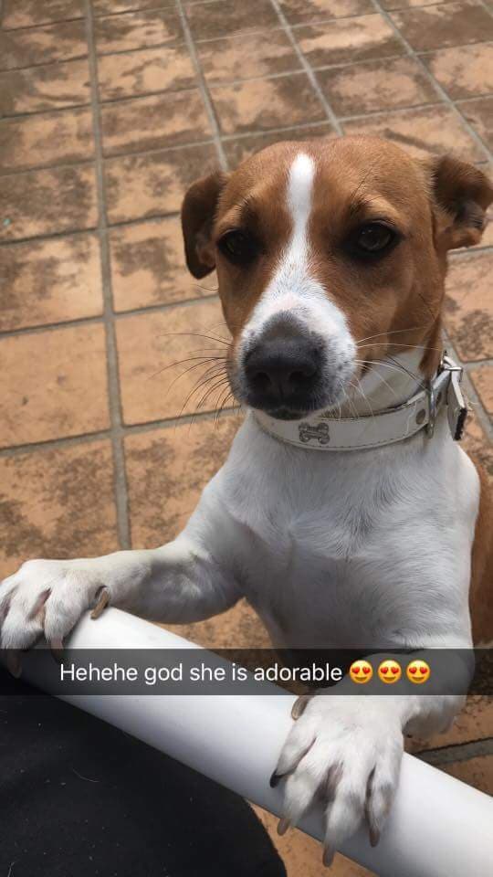 Bella is a very energetic girl as expected from her breed and age. She is super friendly with people and has a tail that never stops wagging, she is very affectionate and is always near by for a pat or belly rub.
