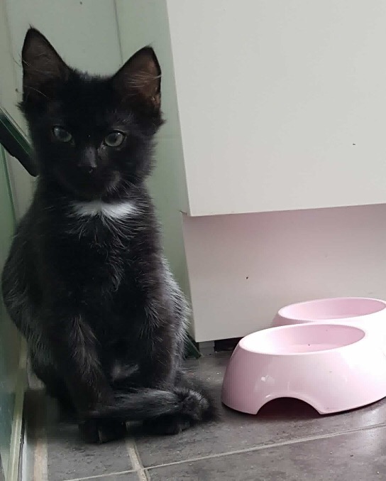 This uniquely coloured young boy is looking for a home! He is medium haired and mainly black, however he has flecks of white all through his fur and his tail has very faint white stripes....Super cute!!