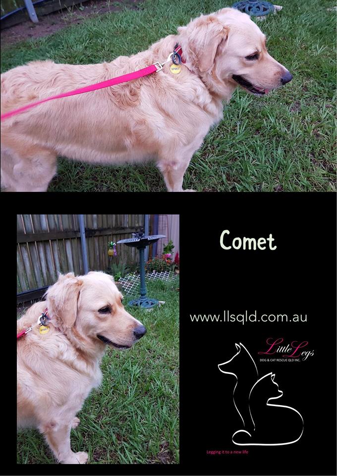 Once Comet comes out of her shell and settles she is lovely. She loves my teenage daughter. Loves a good game of chase in the yard. Enjoys walks and playing in water. She loves brushing time. Comet loves to stretch out on the lounge and playing with the other foster dogs.